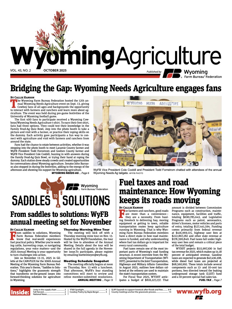 | December 2024/January 2025 | - Wyoming Farm Bureau Federation sets policy